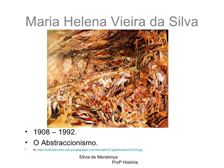 6. 6. Maria Helena Vieira da Silva <ul><li>1908 – 1992. </li></ul><ul><li>O Abstraccionismo. </li></ul><ul><li>In, http:// culturalmente.mja.googlepages.com /desastre32.jpg/desastre32-full.jpg </li></ul>Sílvia de Mendonça Profª História