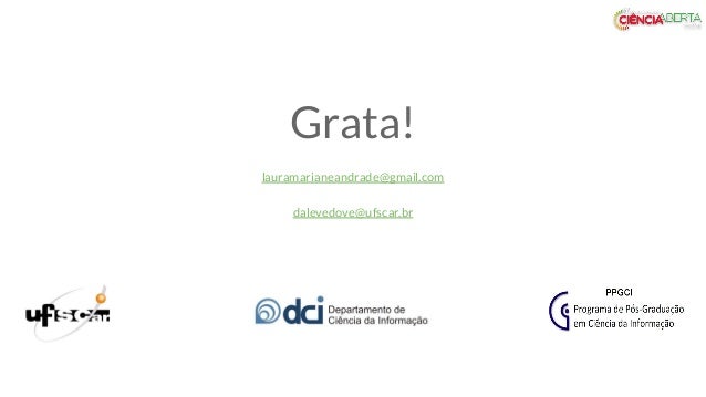 20. 20. Grata! lauramarianeandrade@gmail.com dalevedove@ufscar.br