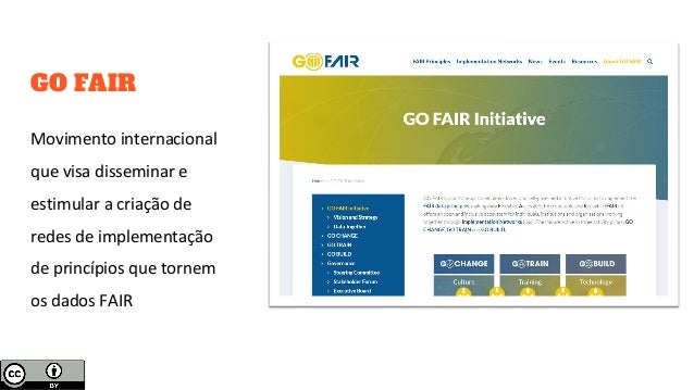 3. 3. GO FAIR Movimento internacional que visa disseminar e estimular a criação de redes de implementação de princípios que tornem os dados FAIR