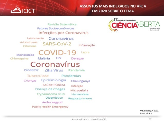 15. 15. 15 ASSUNTOS MAIS INDEXADOS NO ARCA EM 2020 SOBRE O TEMA Apresentação Arca – 11a. CONFOA - 2020 *Atualizado jun. 2020. Fonte: Kibana