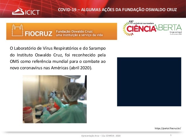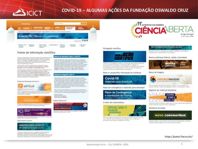 6. 6. 6Apresentação Arca – 11a. CONFOA - 2020 COVID-19 – ALGUMAS AÇÕES DA FUNDAÇÃO OSWALDO CRUZ https://portal.fiocruz.br/