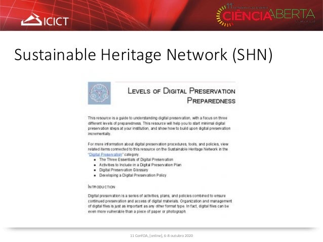 10. 10. Sustainable Heritage Network (SHN) 11 ConfOA, [online], 6-8 outubro 2020