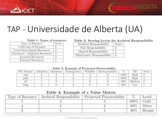 8. 8. TAP - Universidade de Alberta (UA) 11 ConfOA, [online], 6-8 outubro 2020