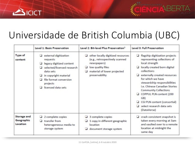 9. 9. Universidade de British Columbia (UBC) 11 ConfOA, [online], 6-8 outubro 2020