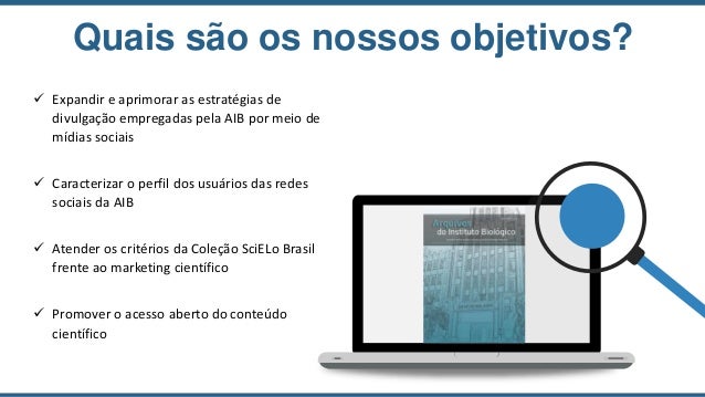 4. 4. Quais são os nossos objetivos?  Expandir e aprimorar as estratégias de divulgação empregadas pela AIB por meio de mídias sociais  Caracterizar o perfil dos usuários das redes sociais da AIB  Atender os critérios da Coleção SciELo Brasil frente ao marketing científico  Promover o acesso aberto do conteúdo científico
