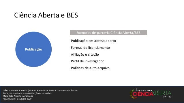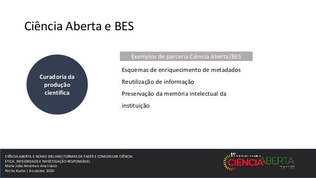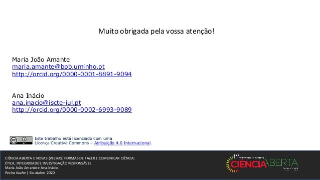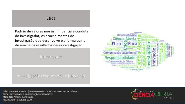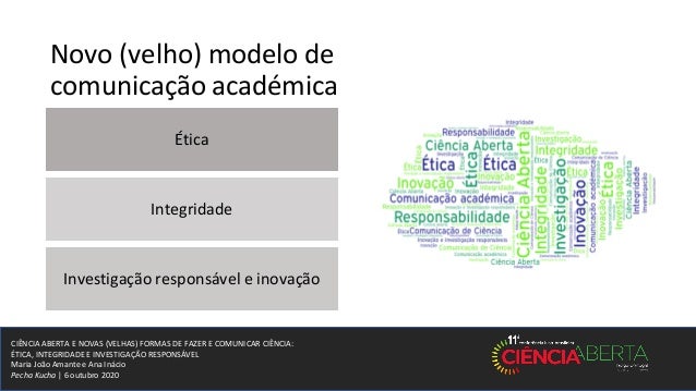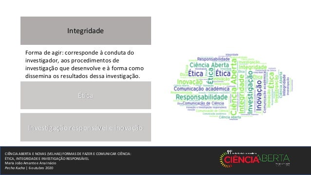 1. 1. CIÊNCIA ABERTA E NOVAS (VELHAS) FORMAS DE FAZER E COMUNICAR CIÊNCIA: ÉTICA, INTEGRIDADE E INVESTIGAÇÃO RESPONSÁVEL Maria João Amante e Ana Inácio Pecha Kucha | 6 outubro 2020
