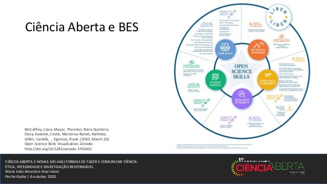 19. 19. CIÊNCIA ABERTA E NOVAS (VELHAS) FORMAS DE FAZER E COMUNICAR CIÊNCIA: ÉTICA, INTEGRIDADE E INVESTIGAÇÃO RESPONSÁVEL Maria João Amante e Ana Inácio Pecha Kucha | 6 outubro 2020 Ciência Aberta e BES McCaffrey, Ciara, Meyer, Thorsten, Riera Quintero, Clara, Swiatek, Cecile, Marcerou-Ramel, Nathalie, Gillén, Camilla, … Egerton, Frank. (2020, March 10). Open Science Skills Visualisation. Zenodo. http://doi.org/10.5281/zenodo.3702401