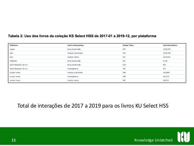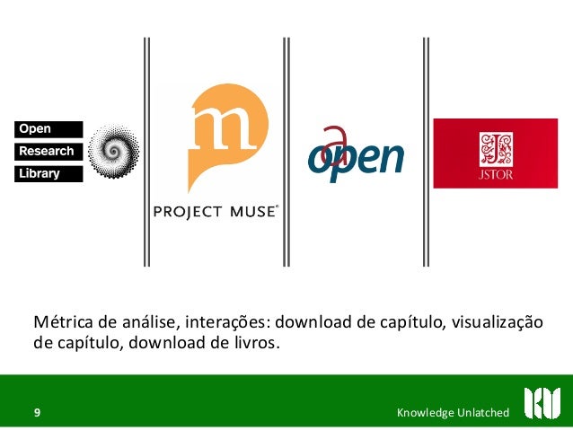 9. 9. 9 Knowledge Unlatched Métrica de análise, interações: download de capítulo, visualização de capítulo, download de livros.