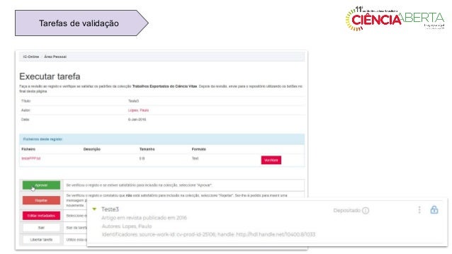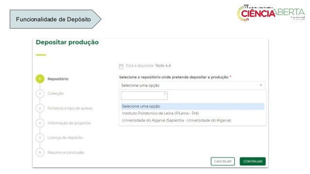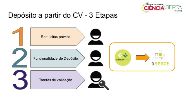 11. 11. Depósito a partir do CV - 3 Etapas Requisitos prévios Funcionalidade de Depósito Tarefas de validação