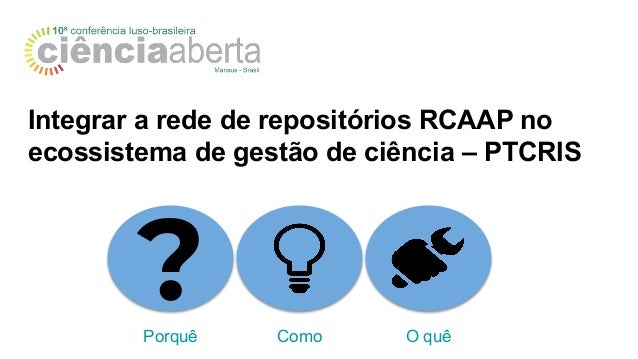 3. 3. ?Porquê Como O quê Integrar a rede de repositórios RCAAP no ecossistema de gestão de ciência – PTCRIS