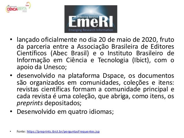 Apresentação realizada na 11ª ConfOA, de 06 a 08 de outubro de 2020, em formato virtual.