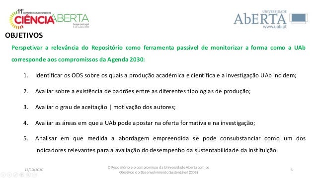 O Repositório e o compromisso da Universidade Aberta com os Objetivos do Desenvolvimento Sustentável