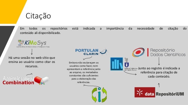 22. 22. Citação Embora não esclareçam os usuários como fazer, nem apresentam a referência junto ao arquivo, os metadados constantes são suficientes para a elaboração das referências. Em todos os repositórios está indicada a importância da necessidade de citação do conteúdo ali disponibilizado. Há uma sessão no web sítio que ensina ao usuário como citar os recursos. Junto ao registro é indicada a referência para citação de cada conteúdo.
