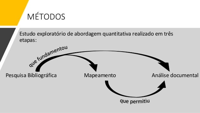 6. 6. MÉTODOS Estudo exploratório de abordagem quantitativa realizado em três etapas: Pesquisa Bibliográfica Mapeamento Análise documental