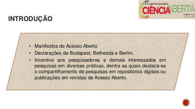 2. 2. INTRODUÇÃO • Manifestos de Acesso Aberto • Declarações de Budapest, Bethesda e Berlim. • Incentivo aos pesquisadores e demais interessados em pesquisas em diversas práticas, dentre as quais destaca-se o compartilhamento de pesquisas em repositórios digitais ou publicações em revistas de Acesso Aberto.