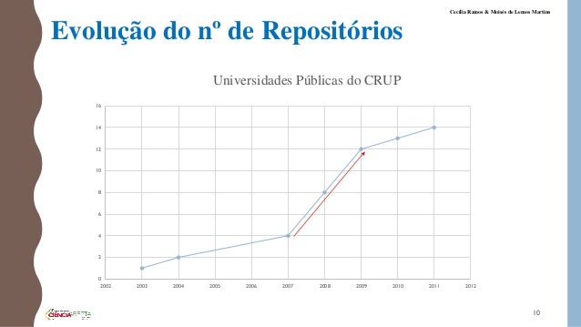 10. 10. Evolução do nº de Repositórios 0 2 4 6 8 10 12 14 16 2002 2003 2004 2005 2006 2007 2008 2009 2010 2011 2012 Universidades Públicas do CRUP 10 Cecília Ramos & Moisés de Lemos Martins
