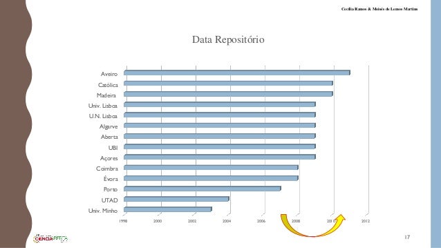 17. 17. 1998 2000 2002 2004 2006 2008 2010 2012 Univ. Minho UTAD Porto Évora Coimbra Açores UBI Aberta Algarve U.N. Lisboa Univ. Lisboa Madeira Católica Aveiro Data Repositório 17 Cecília Ramos & Moisés de Lemos Martins