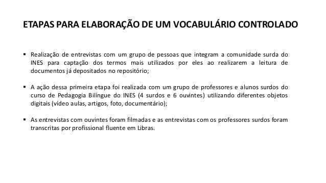 Proposta para elaboração de um vocabulário controlado em educação de surdos para o Repositório Huet – INES – Brasil
