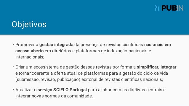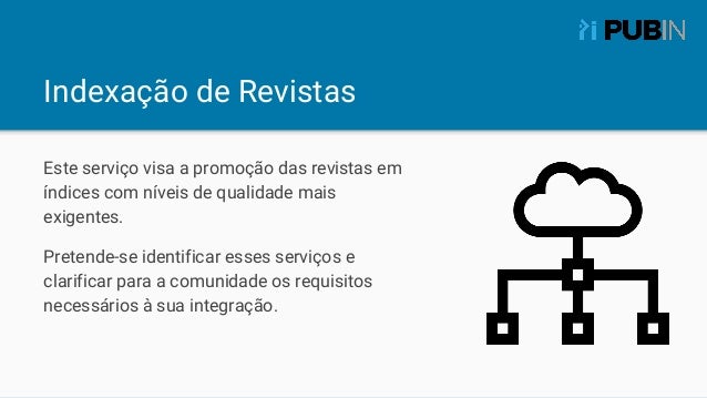 17. 17. Indexação de Revistas Este serviço visa a promoção das revistas em índices com níveis de qualidade mais exigentes. Pretende-se identificar esses serviços e clarificar para a comunidade os requisitos necessários à sua integração.