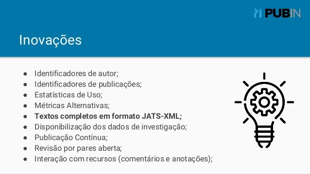 19. 19. Inovações ● Identificadores de autor; ● Identificadores de publicações; ● Estatísticas de Uso; ● Métricas Alternativas; ● Textos completos em formato JATS-XML; ● Disponibilização dos dados de investigação; ● Publicação Contínua; ● Revisão por pares aberta; ● Interação com recursos (comentários e anotações);