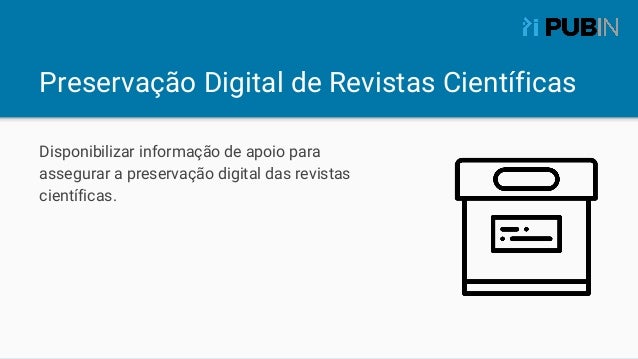 28. 28. Preservação Digital de Revistas Científicas Disponibilizar informação de apoio para assegurar a preservação digital das revistas científicas.