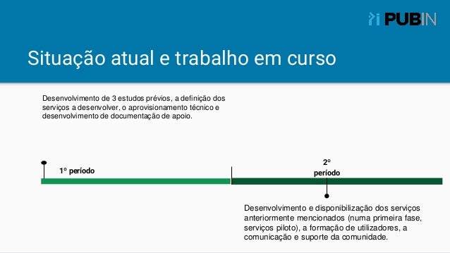 29. 29. Situação atual e trabalho em curso 1º período Desenvolvimento de 3 estudos prévios, a definição dos serviços a desenvolver, o aprovisionamento técnico e desenvolvimento de documentação de apoio. 2º período Desenvolvimento e disponibilização dos serviços anteriormente mencionados (numa primeira fase, serviços piloto), a formação de utilizadores, a comunicação e suporte da comunidade.