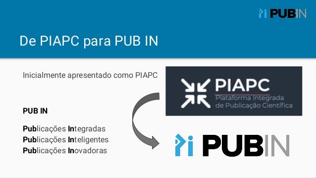 4. 4. De PIAPC para PUB IN Inicialmente apresentado como PIAPC PUB IN Publicações Integradas Publicações Inteligentes Publicações Inovadoras