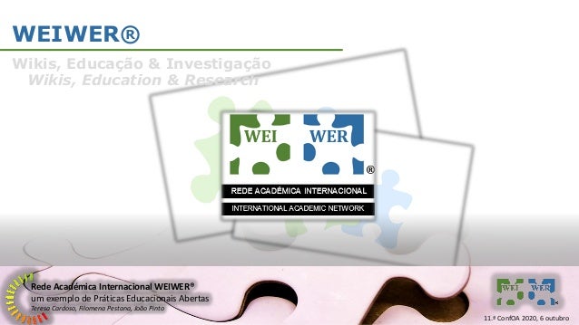 10. 10. Rede Académica Internacional WEIWER® um exemplo de Práticas Educacionais Abertas Teresa Cardoso, Filomena Pestana, João Pinto WEIWER® 11.ª ConfOA 2020, 6 outubro Wikis, Educação & Investigação Wikis, Education & Research