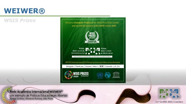 12. 12. Rede Académica Internacional WEIWER® um exemplo de Práticas Educacionais Abertas Teresa Cardoso, Filomena Pestana, João Pinto WEIWER® WSIS Prizes 11.ª ConfOA 2020, 6 outubro