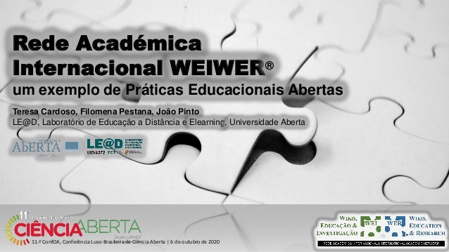 3. 3. Rede Académica Internacional WEIWER® um exemplo de Práticas Educacionais Abertas Teresa Cardoso, Filomena Pestana, João Pinto EDUCAÇÃO ABERTA 11.ª ConfOA 2020, 6 outubro