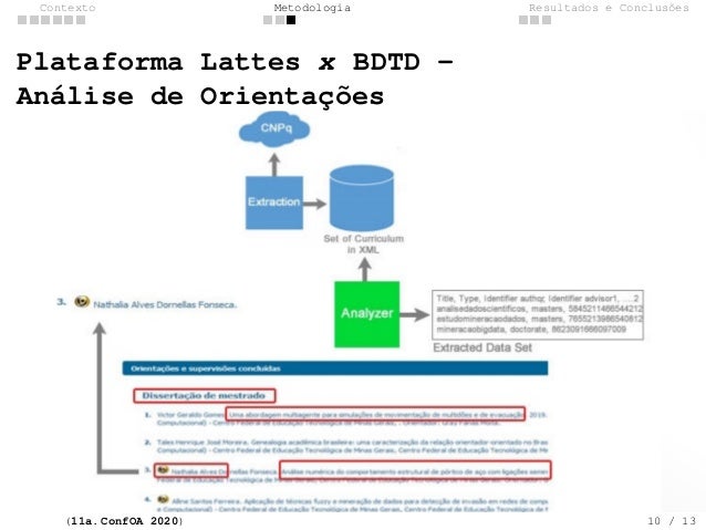 10. 10. Contexto Metodologia Resultados e Conclus�es Plataforma Lattes x BDTD - An�lise de Orienta��es (11a. ConfOA 2020) 10 / 13