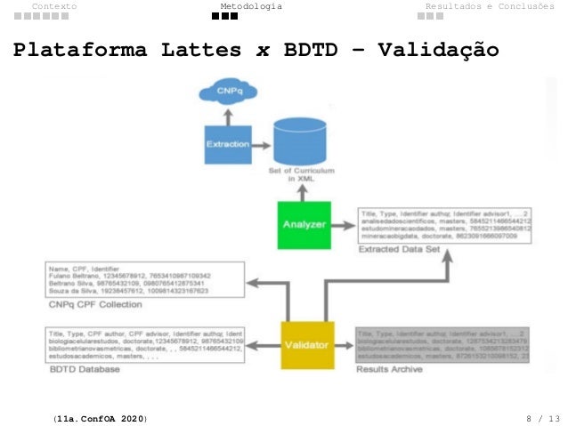 8. 8. Contexto Metodologia Resultados e Conclus�es Plataforma Lattes x BDTD - Valida��o (11a. ConfOA 2020) 8 / 13