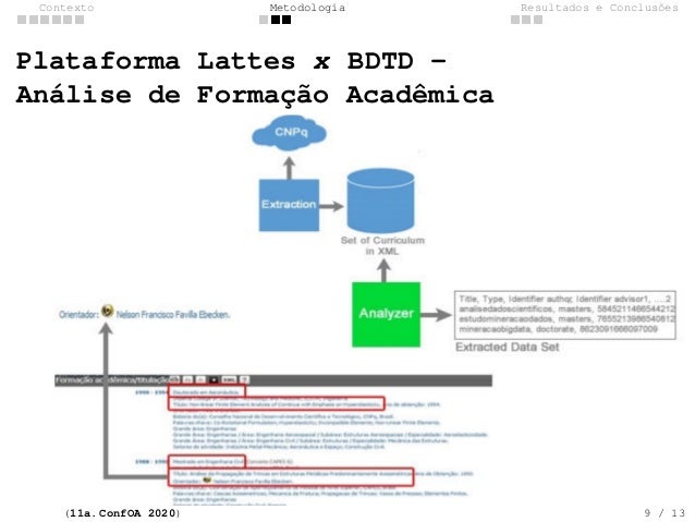 9. 9. Contexto Metodologia Resultados e Conclus�es Plataforma Lattes x BDTD - An�lise de Forma��o Acad�mica (11a. ConfOA 2020) 9 / 13