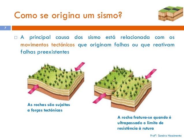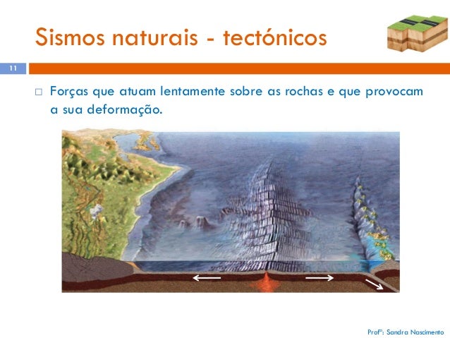 11. 11. Sismos naturais - tectónicos 11  Forças que atuam lentamente sobre as rochas e que provocam a sua deformação. Profª: Sandra Nascimento