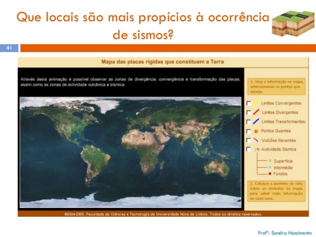 41. 41. Que locais são mais propícios à ocorrência de sismos? 41 Profª: Sandra Nascimento