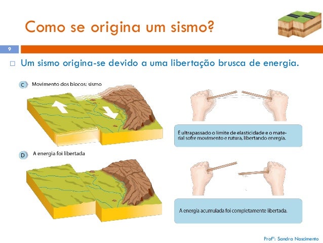 9. 9. Como se origina um sismo? 9  Um sismo origina-se devido a uma libertação brusca de energia. Profª: Sandra Nascimento