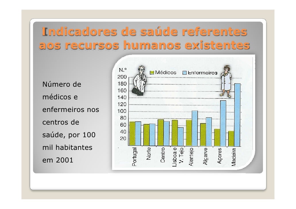 5. 5. Indicadores de saúde referentes aos recursos humanos existentes Número de médicos e enfermeiros nos centros de saúde, por 100 mil habitantes em 2001