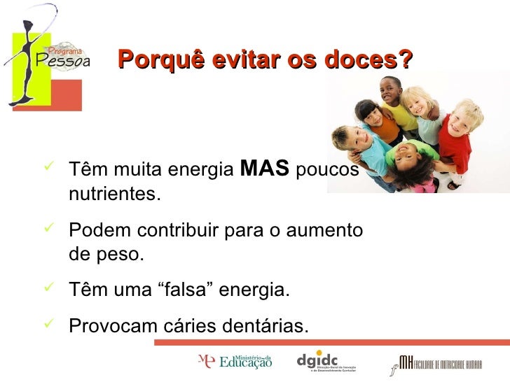 Porquê evitar os doces? <ul><li>Têm muita energia  MAS  poucos nutrientes. </li></ul><ul><li>Podem contribuir para o aumen...