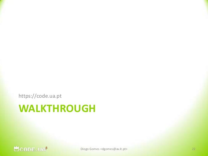 22. 22. WalkThrough<br />https://code.ua.pt<br />22<br />Diogo Gomes <dgomes@av.it.pt><br />