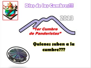 Este documento anuncia la primera cumbre de panderistas en 2013 y da la bienvenida a los asistentes, preguntando quiénes subirán a la cumbre.