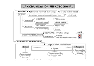 El documento habla sobre la gramática y la comunicación. Explica que la lengua es un sistema organizado en diferentes niveles como el fonológico, morfológico, sintáctico y semántico. También describe los elementos de la comunicación como el emisor, receptor, mensaje y contexto. Finalmente, analiza conceptos gramaticales como los fonemas, sílabas, palabras, sustantivos, verbos y sus características.