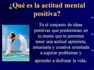Si aprendes a desarrollar una actitud positiva, tendrás el mundo en tus manos, descarga increíbles regalos en audios, videos, libros y reportes visitando: www.articulos.corentt.com
