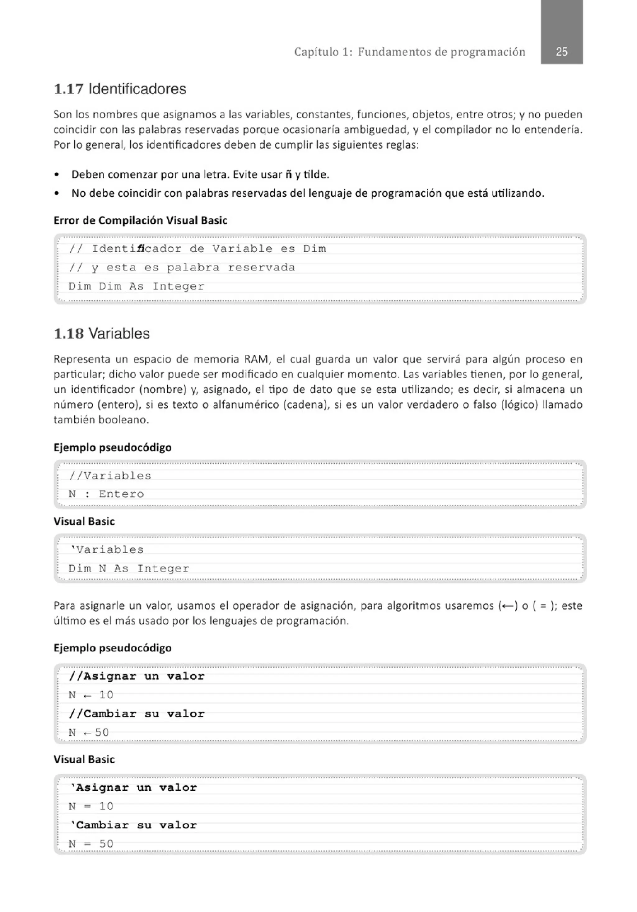 Este documento presenta un libro sobre fundamentos de programación con más de 100 algoritmos codificados. El libro enseña conceptos básicos de programación como algoritmos, diagramas de flujo, variables, constantes y estructuras de control de flujo. Contiene nueve capítulos que resuelven algoritmos usando estructuras secuenciales, selectivas, repetitivas y arreglos. El objetivo es que los estudiantes aprendan a analizar, diseñar y codificar sus primeros algoritmos usando diferentes lenguajes de programación como Visual Basic, Java, C++ y