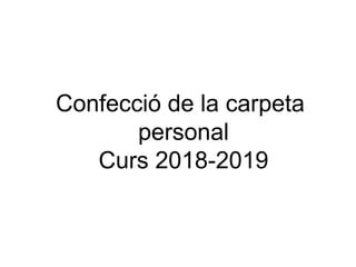 El documento proporciona instrucciones para la confección de una carpeta personal para el curso 2018-2019, incluyendo colocar el nombre y número de lista de forma clara y visible en la portada y utilizar la técnica de collage para decorar tanto la portada como la contraportada con una composición de tema libre.
