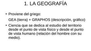 La geografía es la ciencia que estudia el territorio desde el punto de vista físico y las relaciones del hombre con su medio. Los primeros geógrafos de la Antigüedad incluyen a Estrabón y Ptolomeo. En la Edad Media, Marco Polo extendió el conocimiento de Europa hacia Asia. En la Edad Moderna, Cristóbal Colón, Vasco de Gama y Fernando de Magallanes exploraron y descubrieron nuevas rutas a América y la India. En el siglo XIX, la geografía se estableció como una disciplina c