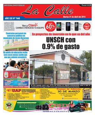 El documento presenta varias noticias breves sobre temas de educación, política y sociedad en Perú. En la primera sección, se informa sobre un programa presentado por el Centro de Información y Educación para la Prevención del Abuso de Drogas para promover la cultura de la legalidad entre los jóvenes. También se discute el proceso de negociación de una propuesta de Convención Interamericana sobre los Derechos Humanos de las Personas Adultas Mayores. Finalmente, rectores universitarios informan sobre los esfuerzos contra un rebrote de terrorismo