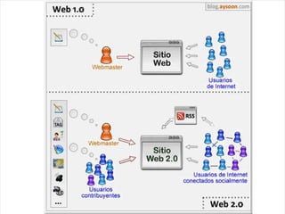 Este documento presenta un programa de dos días sobre estrategias comunicativas basadas en la web para la acción social. El programa cubre temas como video para la acción social, redes sociales, blogs y wikis. También compara las diferencias entre la Web 1.0 y 2.0 y discute nuevos paradigmas de comunicación emergentes en la era digital.