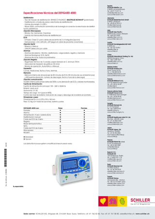 El Defigard 4000 es un desfibrilador bifásico portátil con una interfaz fácil de usar y funciones avanzadas como desfibrilación, marcapasos, ECG y oximetría de pulso. Ofrece niveles de energía ajustables, pantalla grande y clara, autonomía de 3.5 horas, y almacenamiento de datos para monitoreo y registro. Su pequeño tamaño y fácil manejo lo hacen ideal para situaciones de emergencia.