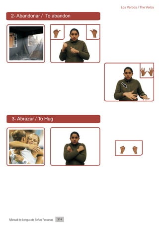3) El documento provee una guía visual de verbos comunes en lengua de señas peruana para aquellos aprendiendo el idioma.