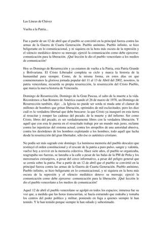 El documento resume los eventos del 11 de abril de 2002 en Venezuela, cuando el pueblo se levantó contra un intento de golpe de estado. Se destaca que el pueblo jugó un papel clave en defender la democracia a pesar de la represión y censura mediática. Siete años después, se recuerda la valentía del pueblo y cómo algunos responsables del intento de golpe y la masacre han comenzado a ser juzgados, aunque aún queda trabajo por hacer para lograr justicia completa.
